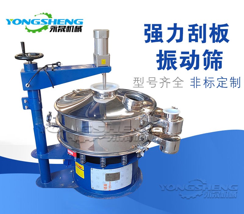 強(qiáng)力刮板振動(dòng)篩是在圓形振動(dòng)篩篩面上面新增不銹鋼刮板或者毛刷,通過刮板或毛刷給物料一個(gè)外力 ,來加速物料通過篩網(wǎng)的篩分速度,來提高振動(dòng)篩篩分量。還可以將結(jié)團(tuán)物料打散、因靜電吸附在篩網(wǎng)上面的物料刮離或者掃離篩面,因而把圓形振動(dòng)篩的應(yīng)用范圍擴(kuò)展至易起靜電,易團(tuán)球,易團(tuán)聚的物料。例如在面粉篩分中,有些細(xì)渣子卡在網(wǎng)孔中,在刮板旋轉(zhuǎn)推動(dòng)的作用下,可以將雜質(zhì)推向出料口,自動(dòng)排出,減少了堵網(wǎng)的發(fā)生;在固液分離作業(yè)中,能把各類漿液中的非溶性物質(zhì)迅速地清除從出料口排出,防止堵網(wǎng),提高篩分效率。